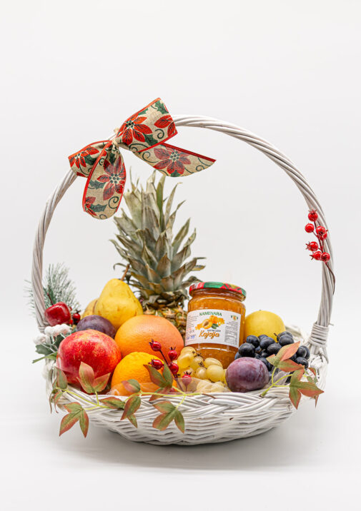 Poklon voćna korpa sa domaćim džemom od kajsije
