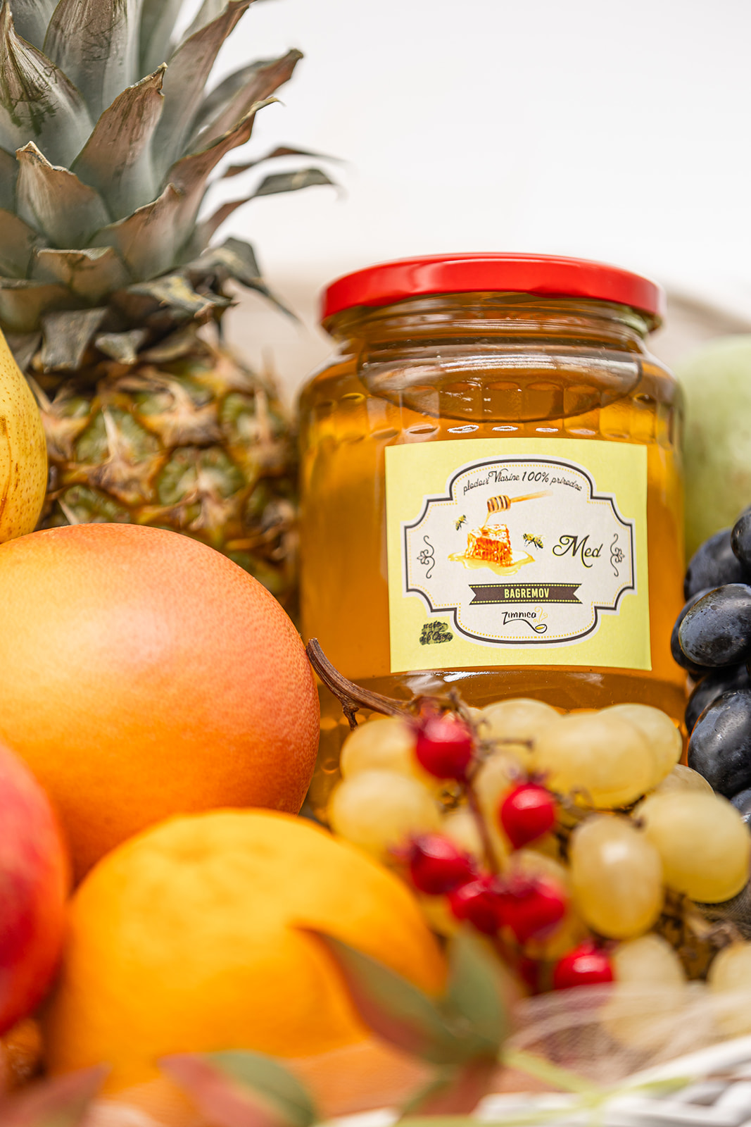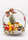 Korpa je od pruća, ručno pletena, a u njoj je spoj pažljivo biranog, svežeg i sočnog voća, poreklom sa domaćih plantaža. U korpi se pakuje ananas, nar, pomorandže, grejpfrut, crno i belo grožđe, kivi, jabuka, kruška, šljiva, banana i drugo voće. U korpi je i vrcani, bagremov med, pogodan za zimske dane, dodatke jelima, dodatke čajevima za imunitet i užinu u danima posta.