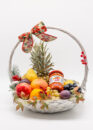 Korpa sa voćem i prirodnim sokom može biti spakovana sa prazničnom dekoracijom ili u klasičnoj, elegantnoj varijanti.